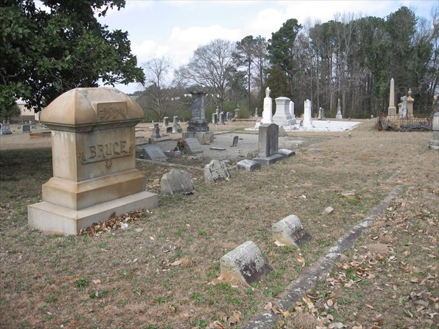 The Lithonia City Cemetery was established in 1851. Its earliest residents include J.R. George and J.M. Born, who donated the land for the cemetery. The first burial at the cemetery was Ann T. Born. Locally quarried granite was used for many of the headstones. The last names Anderson, Born, Bond, Cagle, George, Hollingsworth, Reagan, and Swift are commonly seen in Lithonia City Cemetery; these white families represent some of the community's prominent early residents. It is believed that slaves of some of Lithonia's early settlers are also buried in the cemetery.