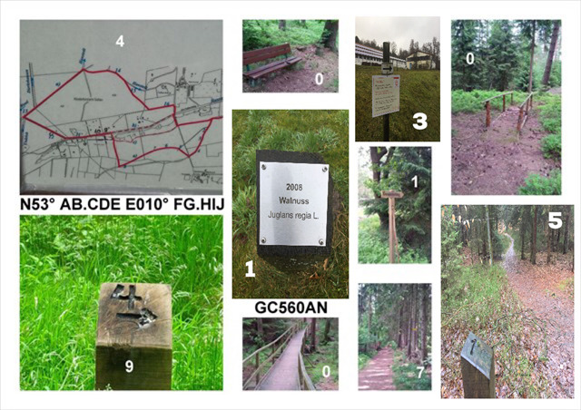 Dieser kleine Multi eignet sich gut als Einstieg zum Wandern, für den Ausflug mit den Kindern oder eben als kleine Laufstrecke. Weil mir das bei den Wandercaches vom NDR so gut gefallen hat: An insgesamt zehn Stationen müsst Ihr Bilder dem jeweiligen Ort zuordnen und könnt damit die Koordinate des Final ermitteln. Den Cache findet Ihr bei N53° AB.CDE E010° FG.HIJ. Wobei A bis J für die an den WPs A bis J ermittelten Zahlen stehen.