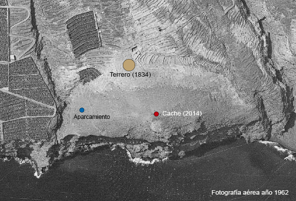 El caché: Sube al punto más alto de la Media Montaña (173 m), compara lo que ves con la imagen aérea de 1962 e imagina como sería el lugar hace unos 180 años (1834). Sin autopistas, carreteras, ni los medios actuales de comunicación como: prensa, radio, televisión, telefonía, internet... ¿Como consiguieron organizar tan importante evento a nivel insular? Mientras te planteas esta cuestión, puedes buscar el caché que te trajo a este lugar y disfrutar de las panorámicas que te brinda esta pequeña elevación montañosa.