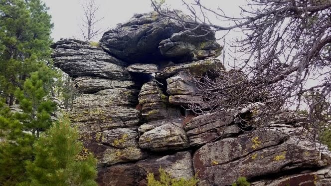 This cache is on top of a ridge parallel to Palmer Creek Road just past the "Y". There is no real parking along the road, but there is a somewhat wider place to pull off the beaten path just past the cattle guard to the northeast. Depending on your exact route, this could be a medium steep climb or one requiring some of your more extreme fallen tree hopping skills. The cache is hidden at the top, next to the edge of the cliff. The picture above is not the cache location, but a nice view nearby.