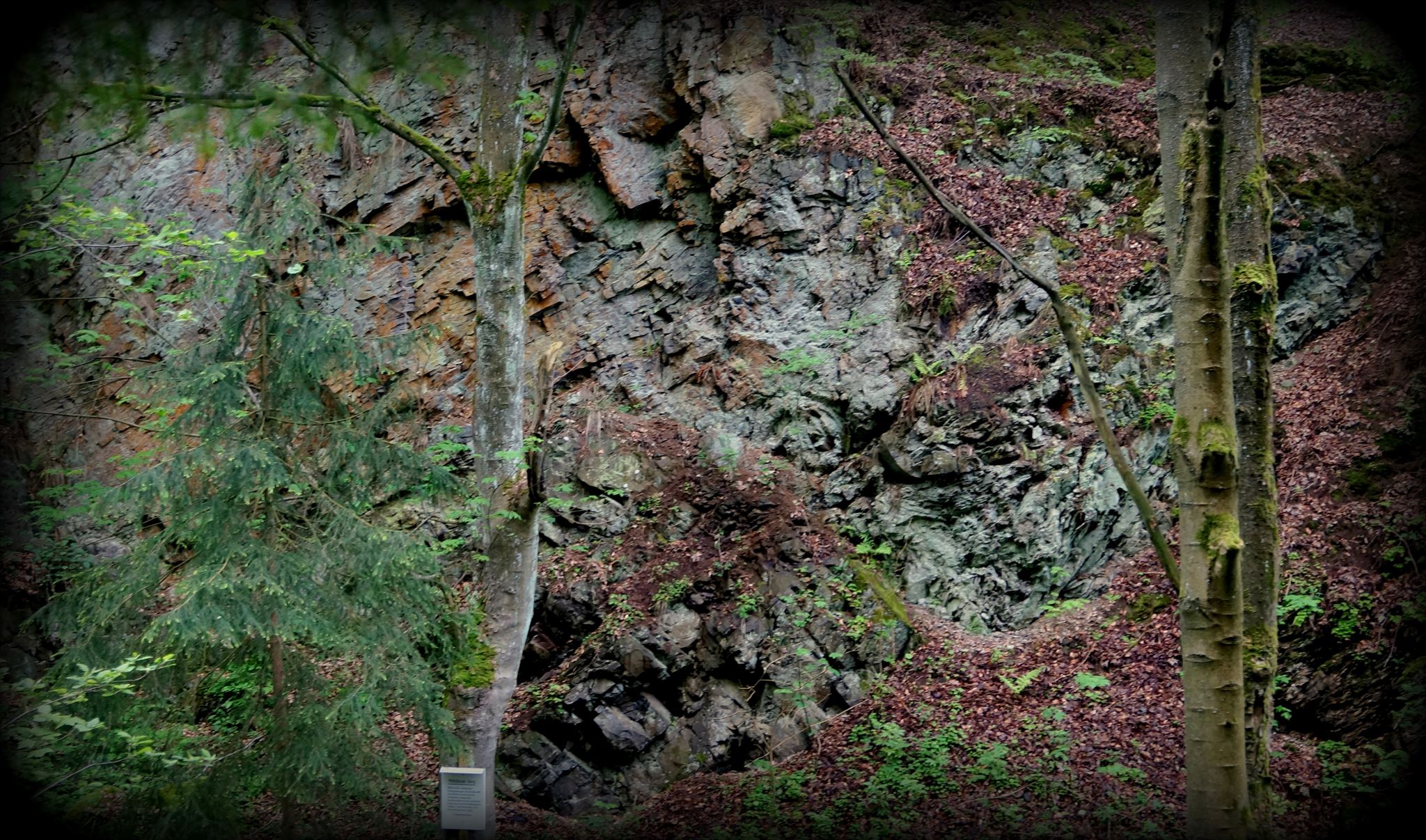 Direkt an der B244 zwischen Elbingerode und Wernigerode befindet sich eine kleine Anfahrt mit einer Haltebucht. Von hier aus kann man dem beschilderten Bergbaulehrpfad des Revier Büchenberges folgen. Um diesen EarthCache loggen zu können genügt es aber Station 4, den „Porphyritsteinbruch“ aufzusuchen. Dieser befindet sich an den oben angegeben Koordinaten, man gelangt dorthin über den beschilderten Pfad, wenn man von der Bundesstraße kommend links abbiegt. In diesem Porphyrittagebau wurde um 1870 damit begonnen, diesen sogenannten Mittelharzer Eruptivgang abzubauen. Der damit gewonnene „schwarze Porphyr“ wurde für den Straßenbau verwendet. Um was es sich bei diesem Porphyr handelt, was ein Eruptivgang ist und was diesen Steinbruch noch besonders macht möchten wir euch nun vorstellen.