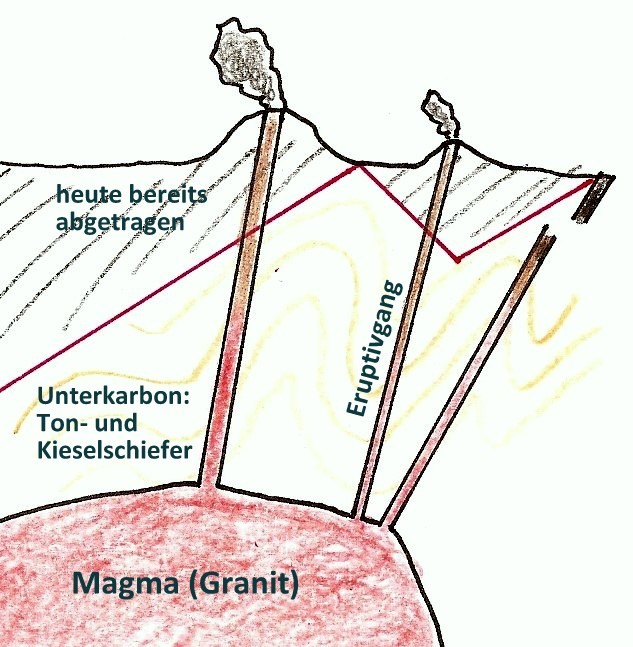 2. Wie werden die Gesteine (Kiesel- und Tonschiefer) genannt, zwischen denen das Magma aufgestiegen ist?