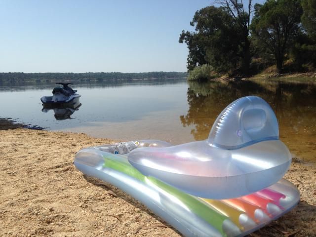 na água, em plena Barragem de Montargil: Zona de Recreio Balnear !