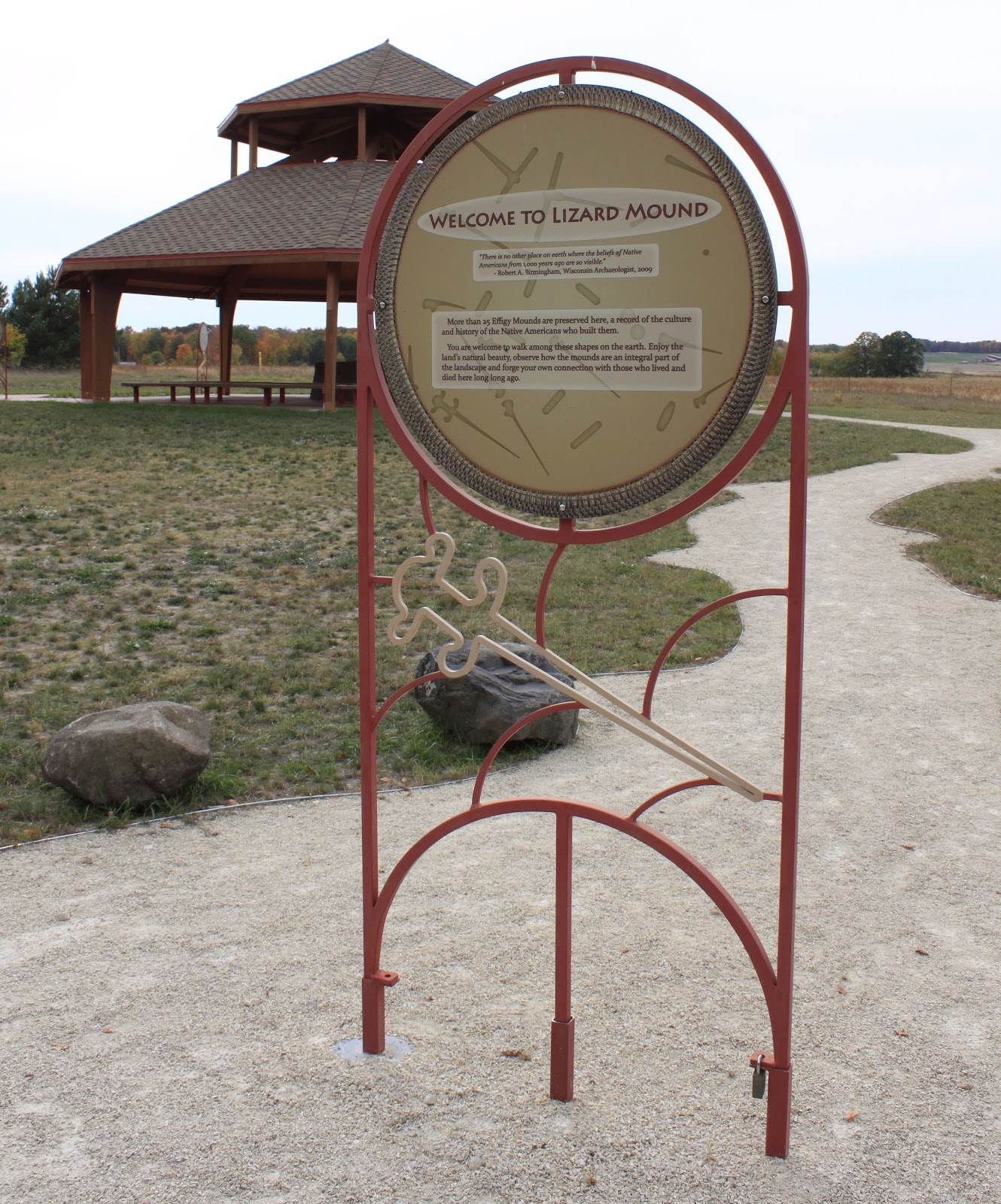 Caches are not allowed in Lizard Mound park, therefore this cache is NOT at the listed coordinates. Answer questions to find the final container, hidden in Sandy Knoll County Park, located a couple miles away. The answers to the puzzle can be found on the "Earth Sky Water" sign near the Lizard Mound Interpretive Center.