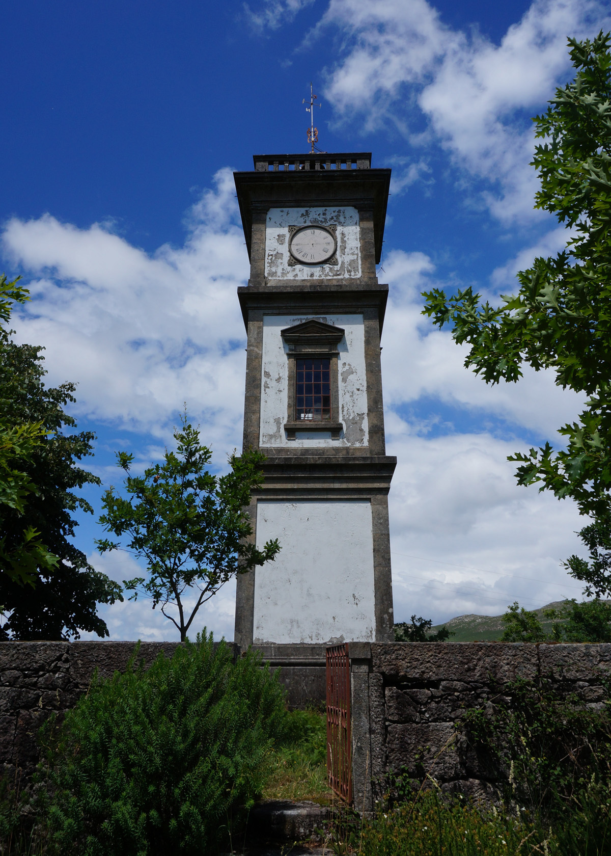 Apesar de ao relógio faltar ponteiros e os que sobram não se mexerem, o relógio ainda funciona e o sino dá as horas. Não se assustem se ele tocar