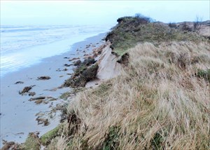 De seneste par år har havet til gengæld givet tilbage. I løbet af 2018/19 er stranden her ud for og hen mod Hirtshals øget gevaldigt. Det er lang tid siden bølgerne har været bare tilnærmelsesvis i nærheden af klitskrænten. Det har betydet at vegetationen har kunnet få fat i sandet og en strandsump er godt på vej til at blive etableret.