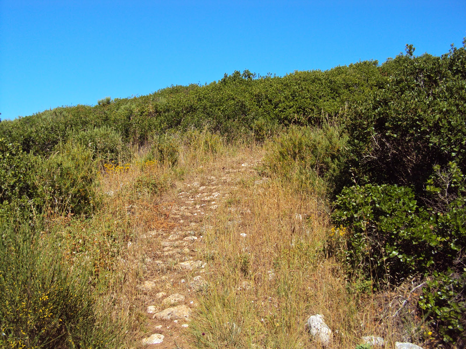Continue a descer até encontrar a estrada de alcatrão. Siga pela direita até hegar a um cruzamento com uma estrada de terra batida. Entre neste caminho e na encruzilhada seguinte opte pela direita, iniciando a subida desta encosta da Serra.