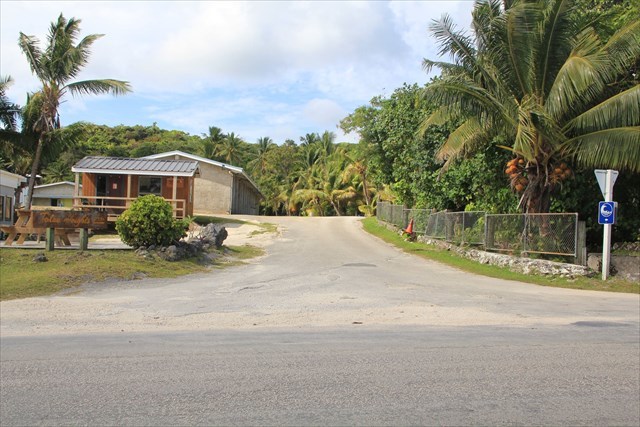 From the upper forest edge cache it is a 550m downhill ride to here, very steep just before the cache site, and a further 300m past the Primary School to the main road in Alofi.