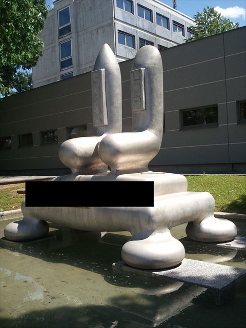 Zähle bei dieser Skulptur die Schlaufen der Spule. (Die Schlaufen befinden sich unter dem schwarzen Balken am Bild :) ) Anzahl = F