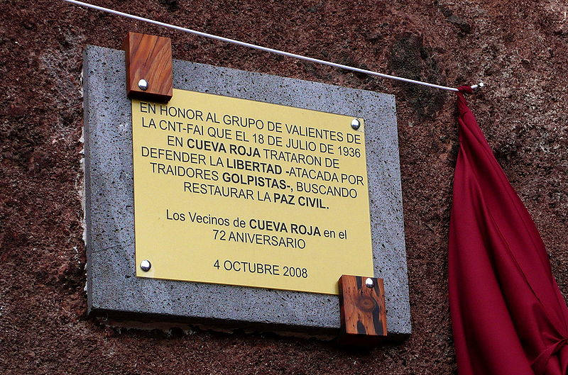 Año 2008: El 4 de octubre de 2008, familiares de las víctimas y vecinos de Cueva Roja, de Barrio Nuevo y personas de distintas partes de la isla, se reunieron para recordar a los 19 miembros de la CNT que defendieron los valores de la democracia, frente al golpe de estado fascista y que por ello fueron fusilados. El acto consistió en la lectura de un discurso en memoria de “Los 19”, a continuación, un familiar de las víctimas destapó la placa colocada en la cueva. En el mismo lugar donde en 1936 los miembros de la CNT celebraron una reunión para debatir cómo actuar ante el alzamiento militar contra el gobierno democráticamente establecido. Luego se procedió a una ofrenda floral en memoria de los fusilados, fueron momentos muy emotivos y cargados de sentimiento. Tras la ofrenda se plantó un drago en la Plaza de Cueva Roja en recuerdo de las víctimas.