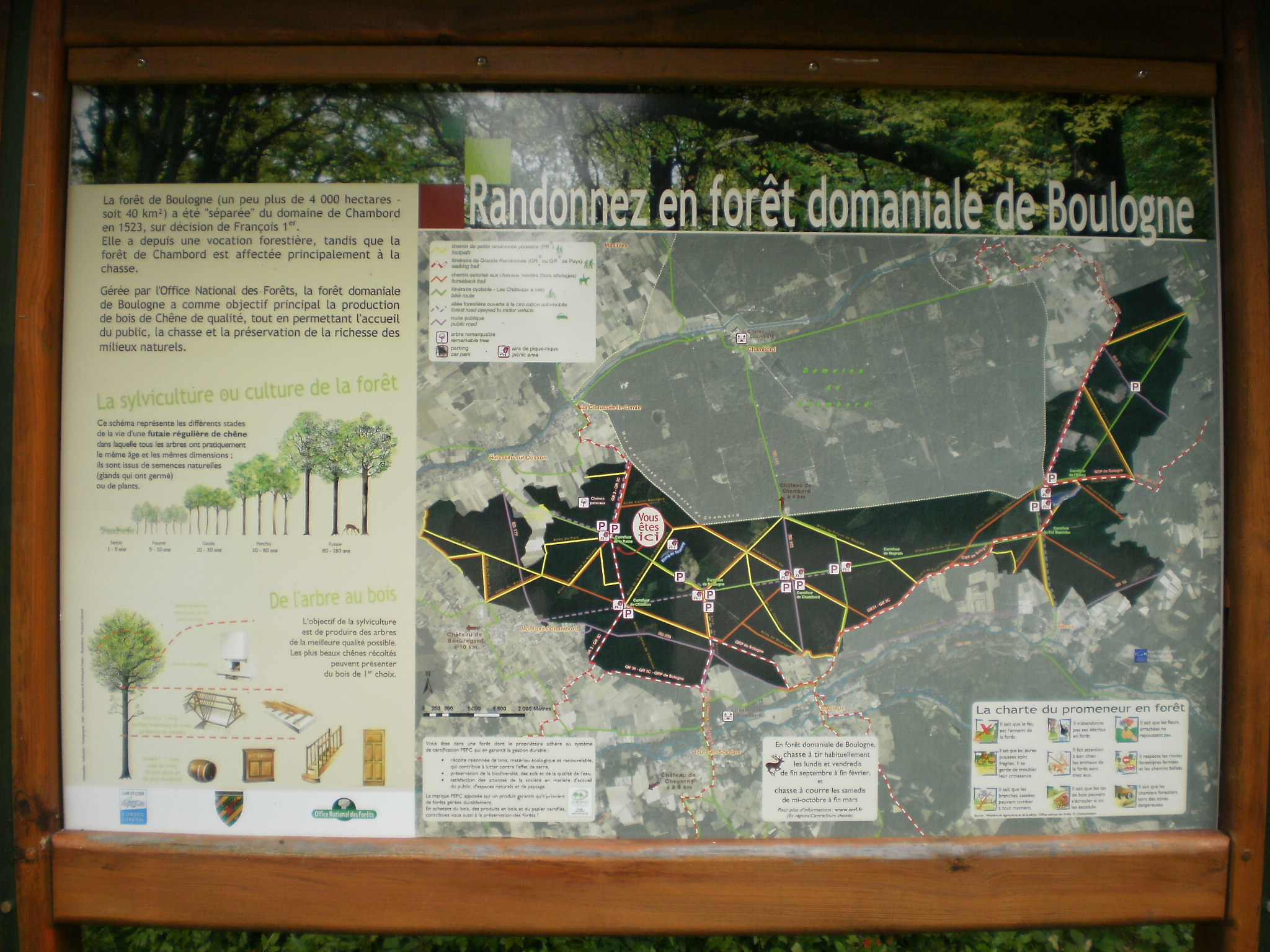 Vous êtes ici à la recherche de la première cache de la série de La Forêt de Boulogne. De ce carrefour vous pouvez également partir en randonnée pédestre ou cyclo sur de nombreux parcours mis à votre disposition comme vous pourrez le constater sur le panneau explicatif.