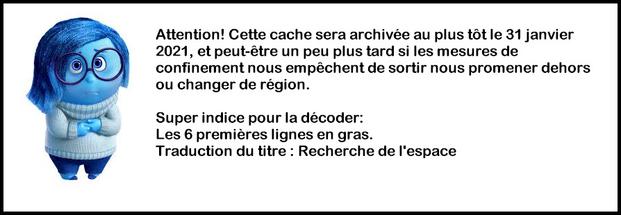 Les coordonnées de cette cache sont fictives et vous devez trouver les millièmes de minutes des vraies coordonnées, soit 6 chiffres.