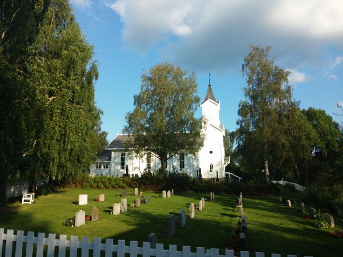 The cemetery was dedicated at the site in 1878. Church was built by builder Hans Øverby in 1880-1882 and inaugurated on November 22 in the 1882. It had unpainted exterior to 1907, and today's sacristy is from 1959. Same year was appointed morgue in the basement under the vestry.