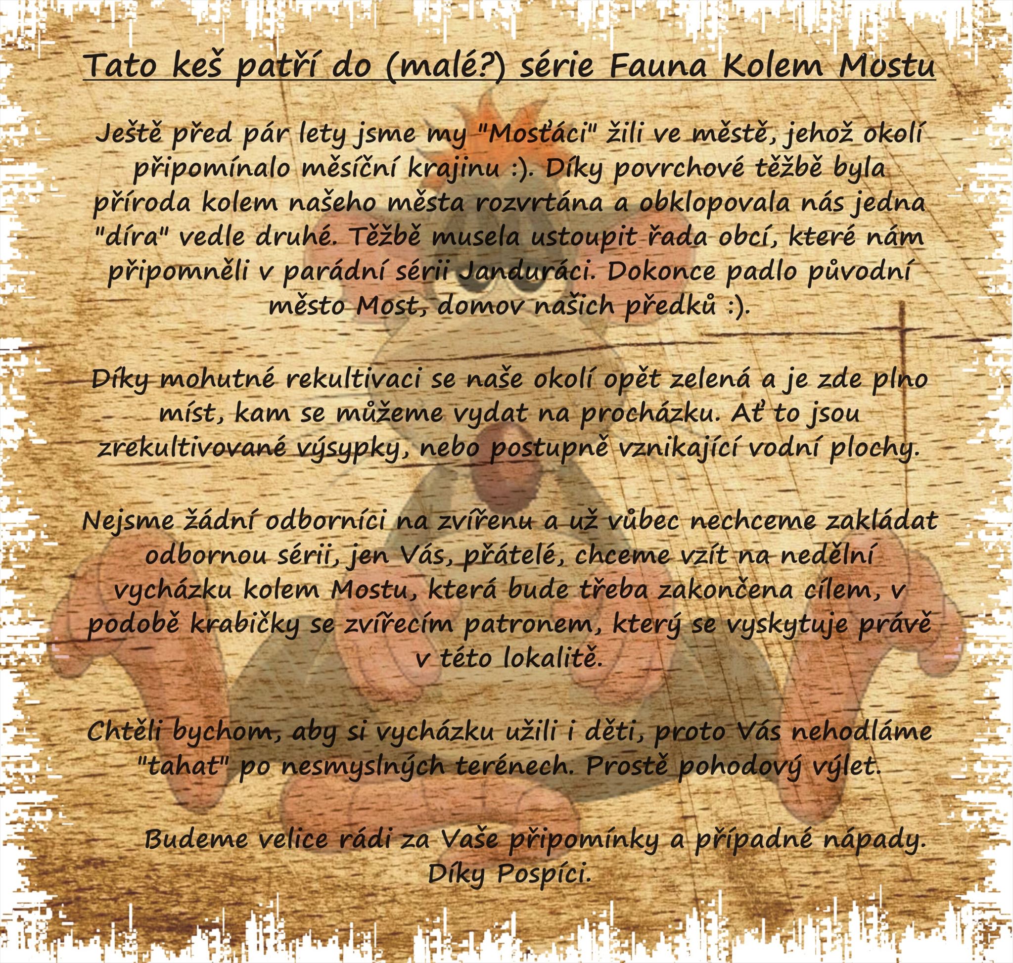 Keška je umístěna cca 10 m od cesty. Netřeba se pro ni drát cestou necesto přímo za šipkou :)