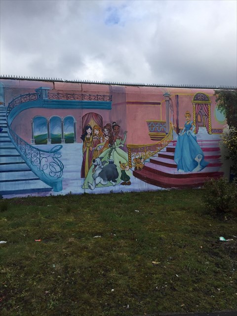 Belfast is famous for its many murals, its one of the main tourist attractions. Most of them have a political nature due to our history. This cache is placed beside one of Belfasts murals, its topic however is not political...