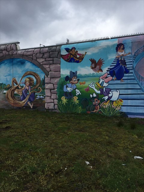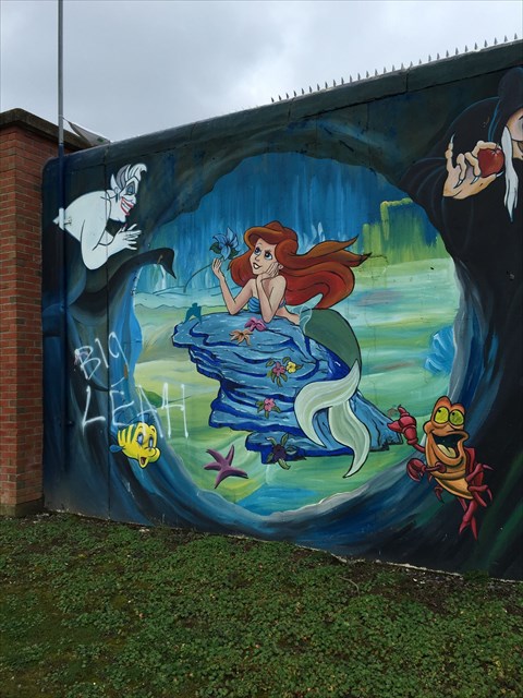 A great cache for kids and the big kids we all are! This mural dictates a series of famous comic book (and movie!) heroes including spiderman, the hulk and many more! If you walk around the corner you will now see the added Disney Mural! Including everyones favourites - Rapunzel, Elsa, Olf, the Little Mermaid, Merida and Cinderella to name just a few!!