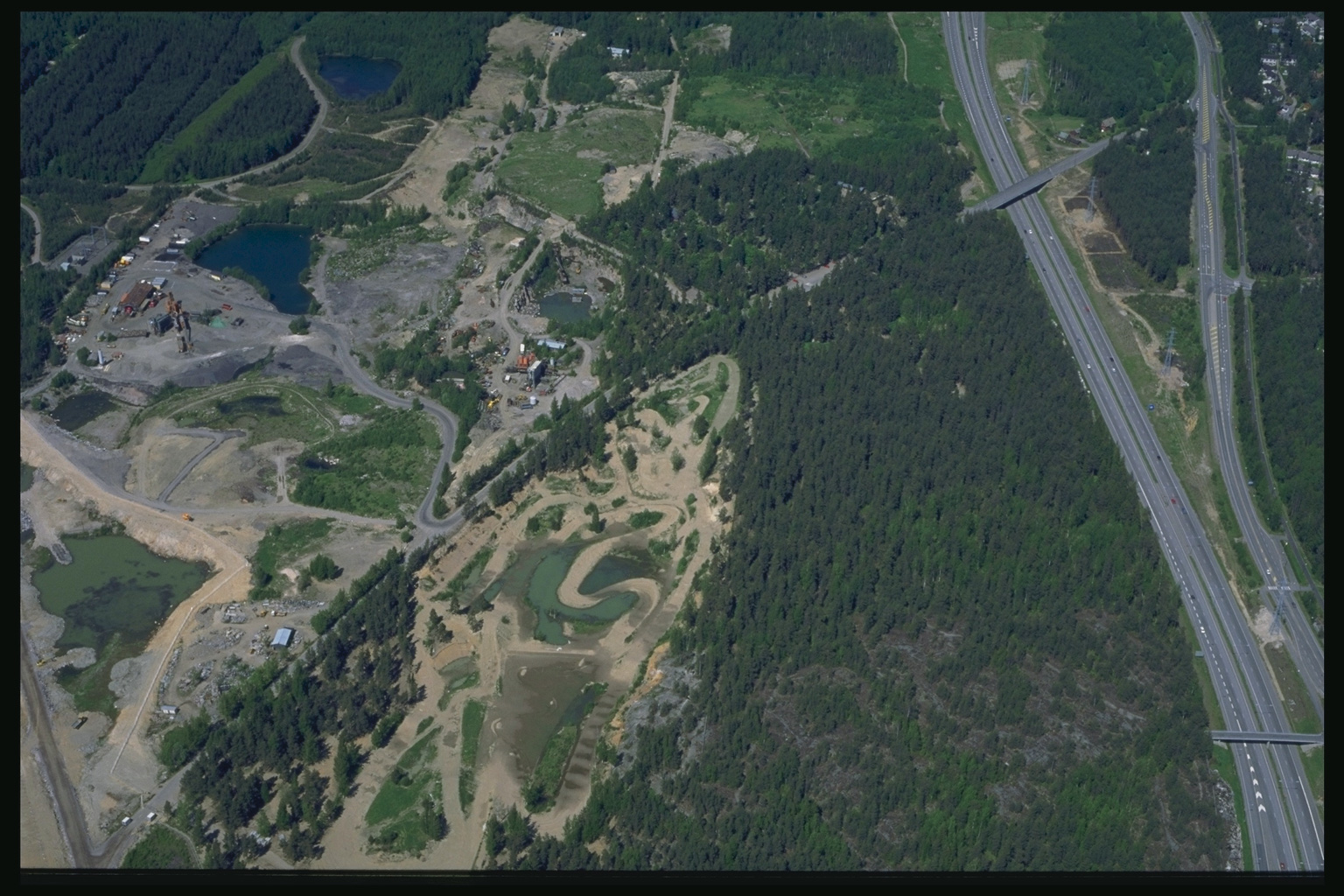 29 motocross World Championship races were held in Ruskeasanta race track during 1962-1998. The expansion of Helsinki-Vantaa courier terminal area has since then claimed land of the race track and there is nowadays a new race track on the other side of the Helsinki-Vantaa airport. The approximate location of the current Tullimiehentie road and the race track can be seen in the above aerial image from 1996. The listed coordinates of this cache point to the remaining part of the race track's northern corner.