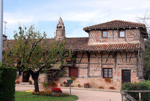 St Cyr sur Menthon - La grange des Carrons. Une pure merveille ! La mitre de cette cheminée sarrasine est l'une des plus curieuses de Bresse : conique, elle ressemble fort à sa voisine, la Grange du Clou, avec son dôme en forme d'ogive, mais d'aspect plus renflé.