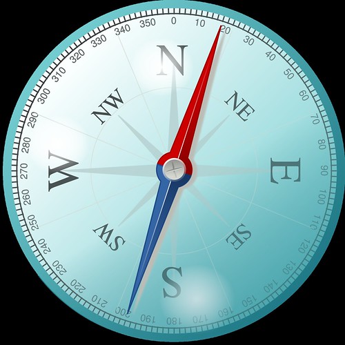 Uma bússola é um objecto com uma agulha magnética que é atraída para o polo magnético terrestre.