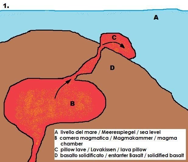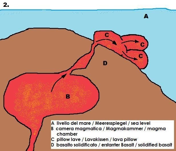 Figura 1. Fuoriuscita di magma: formazione del primo cuscino.
