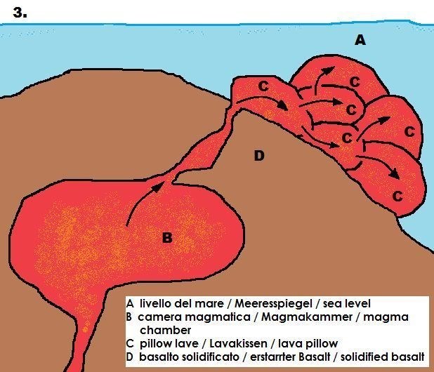 Figura 3. Formazione di ulteriori cuscini alimentati dal continuo afflusso di magma