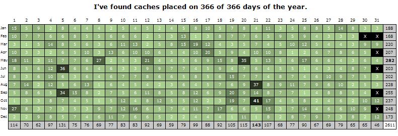 To log this cache you must find a cache that was placed on every day of the year.