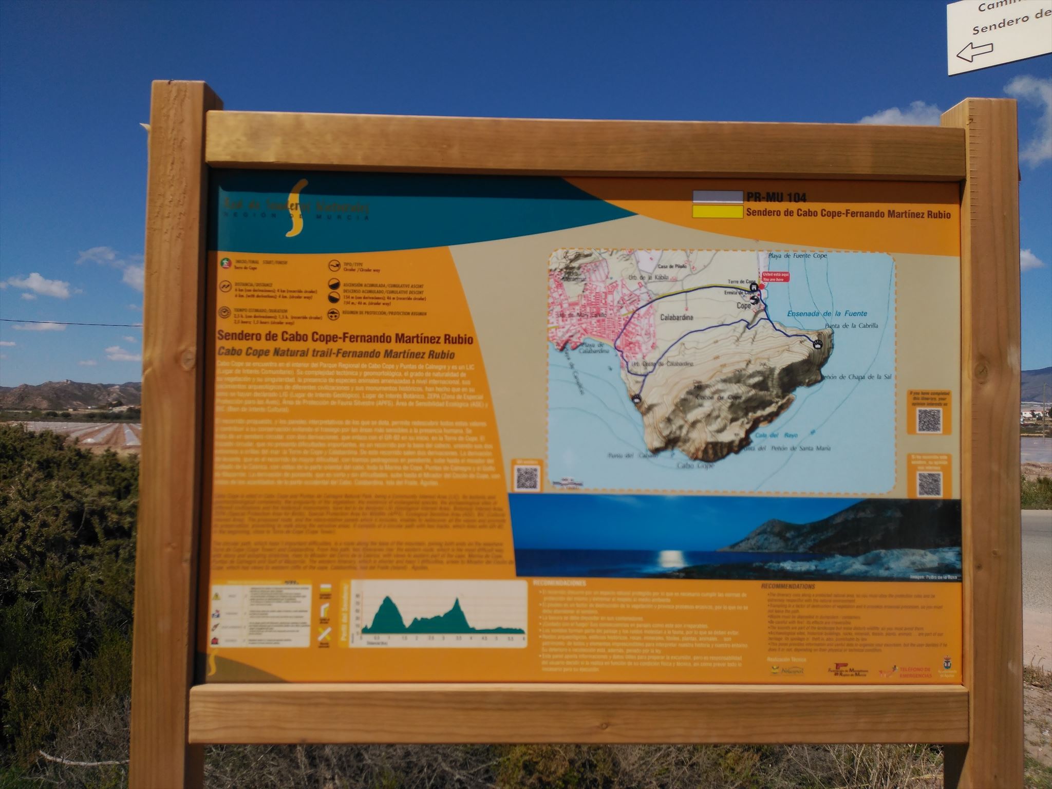 3. En la foto siguiente se ve un panel del sendero natural de cabo cope, ¿cual es el regimen de preoteccion que se le otorga segun el cartel a cabo cope?