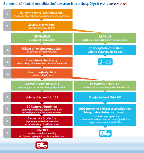 Zahajte resuscitaci 30:2 (opakovaně 30 stlačení hrudníku a 2 umělé vdechy)