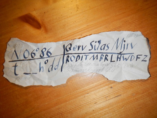 Eines Tages, als ich mal wieder meinen Dachboden aufräumte, fand ich diesen Zettel: Ich vermute aufgrund der ° -Zeichen, dass man Koordinaten herausbekommen muss. Vielleicht könnt ihr ja etwas damit anfangen