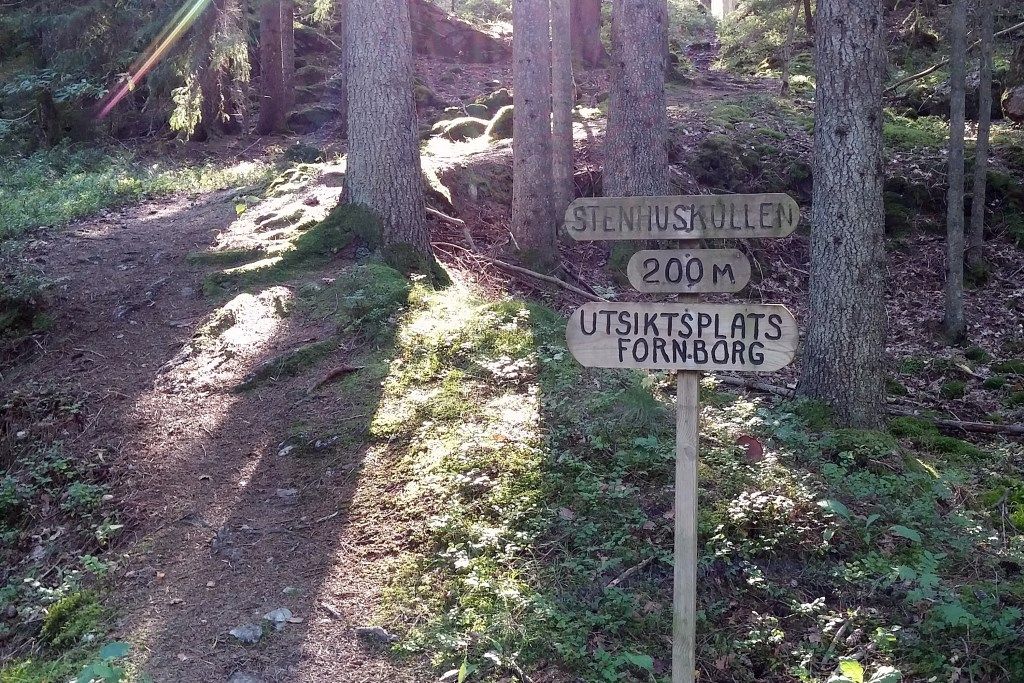 Terrängen däremot är lite påfrestande både på vägen upp till toppen och ner förbi fornborgen så halksäkra skor med grovt mönster är att rekomendera, speciellt om det är vått ute.