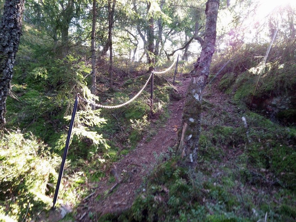 Det är en ganska kort men brant stigning för att komma upp till toppen med där som det är som brantast finns både räcken och kedjor för att lättare kunna ta sig upp.