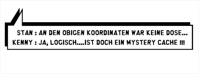 Hier könnt ihr sehen ob Kyle, Kenny und Stan doch noch die Dose gefunden haben: Als South Park Fan dürft ihr nach erfolgreichem Loggen dieses Banner in euer Profil einfügen: HTML-CODE: <a href="http://coord.info/GC5CHJY"><img src="https://abload.de/img/6kcqkpdy7gjtp.gif" border="0" width="200" height="140" /></a>