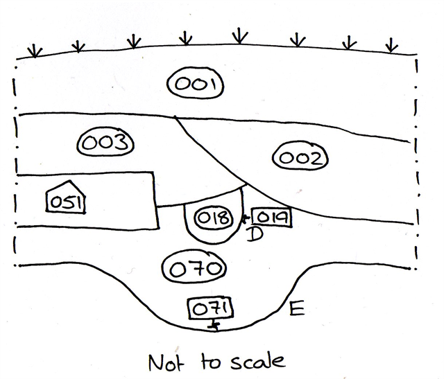 Cache - This puzzle consists of three pictures that would be familiar to any archaeologist. They are a plan, section drawing and Harris Matrix, respectively. The final cache is placed within the barracks. This cache was placed to coincide with new university students (freshers) arriving, and hopefully joining ArcSoc! This has been placed as part of a 'Geocaching trail - learn about Winchester' day where hopefully new and old students alike can learn more about Winchester, and maybe take up geocaching as a result! Of course anyone can grab these caches!