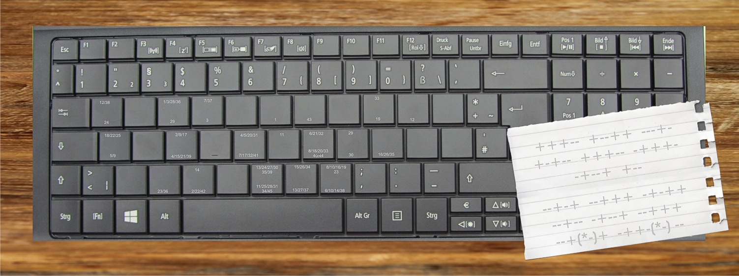 Er schiebt ein paar alte Kaffeetassen zur Seite, eine halbleere Tüte Gummibärchen, angekaute Kugelschreiber...und stockt: momentan, was liegt hier denn halb auf der Tastatur?