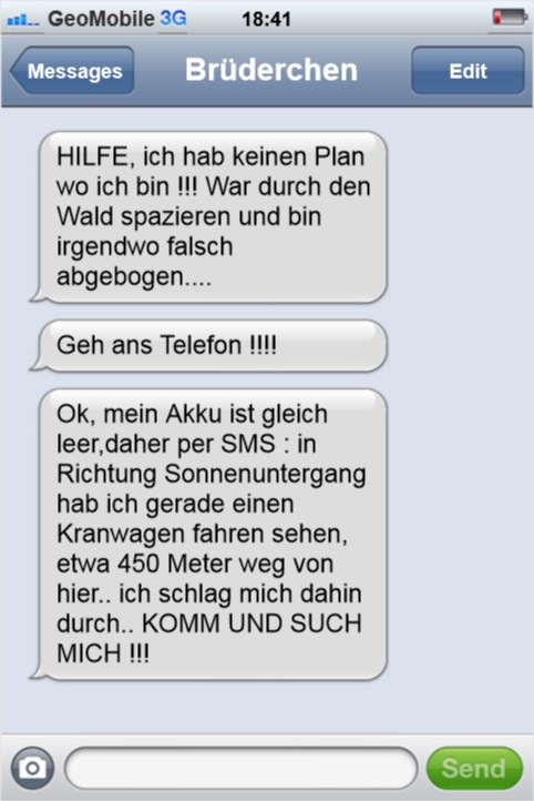 Er hat uns auch einen Screenshot der letzten SMS des kleinen Bruder zugesendet....