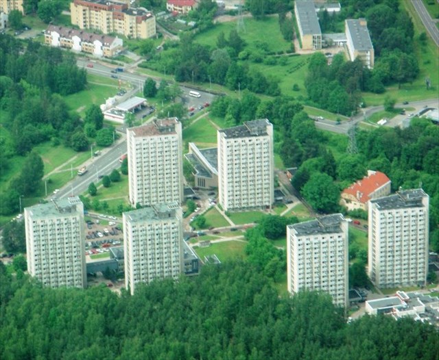„Niujorkas“ (or „New York“) is a student campus in district of Saulėtekis built in 1974-1978 by architect Bronius Krūminis project. It was the first sixteen-story buildings at that time in Vilnius. And that is why this student campus got it‘s nickname „New York“ which is still used nowadays.
