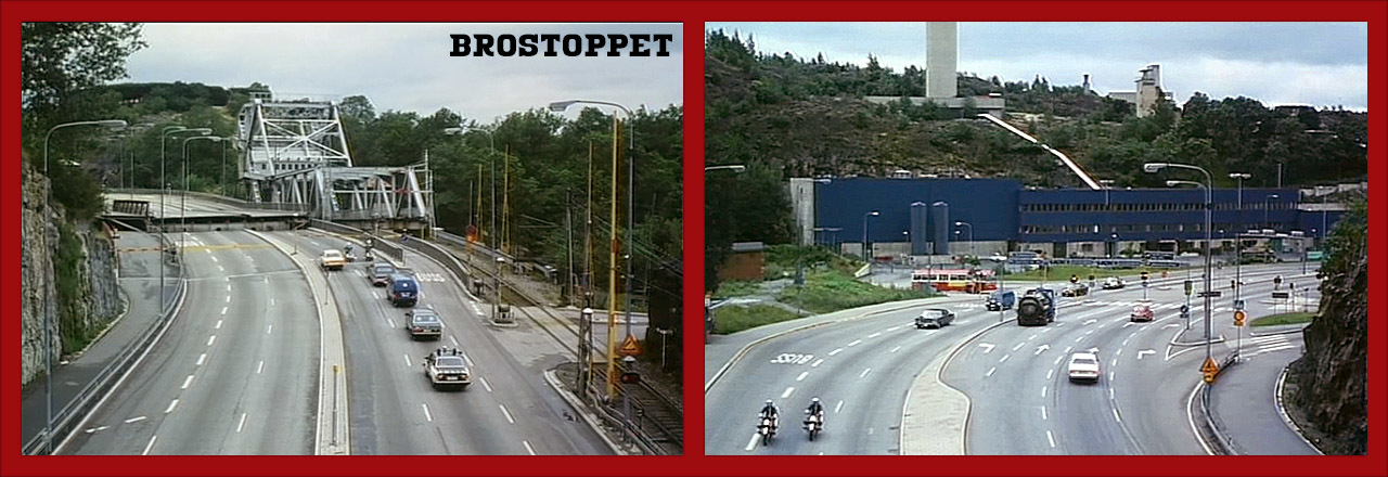 Här vid Danviksbron utför ligan sin kupp för att stjäla Bedford-Diamanterna. Tornet där Rocky släpper ut ballonger är Mannagrynskvarnen, uppförd år 1923, som ligger en bit bort vid Danviken. Med hjälp av en segelbåt med extra lång mast orsakar ligan ett brostopp, som tvingar värdetransporten att stanna. Danviksbron är en öppningsbar bro som förbinder Södermalm med Södra Hammarbyhamnen, och uppfördes åren 1922/1965.