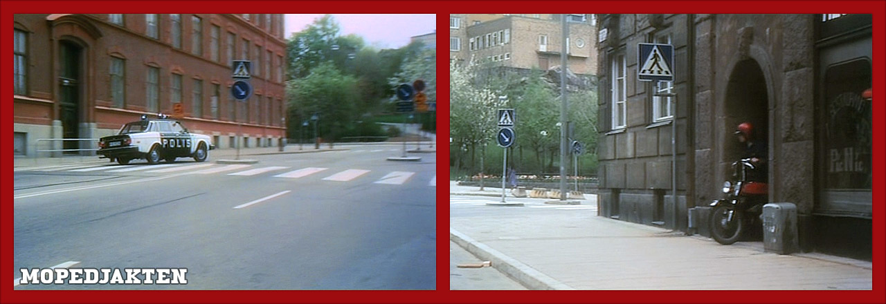 Det strular till sig för Jönssonligan, och Vanheden och Rocky hamnar bakom lås och bom. Sickan vill frige sina kumpaner. På den här platsen ser vi Rockys son Bill på moped som försöker lura bort Polisen. Jakten sker nära S:t Göransparken, Stadshagen.