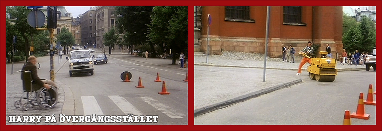 Här ska ligan stjäla ett datachip med försvarshemligheter. På den här platsen utanför S:t Jacobs Kyrka, ser vi Harry utklädd till rullstolsburen gubbe på ett övergångsställe. Idag ser det annorlunda ut på platsen. År 1984 gick nämligen Arsenalsgatan rakt igenom Kungsträdgården, men idag är det en gågata och övergångsstället i filmen finns inte kvar.