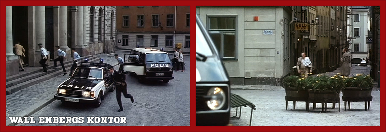 I den första filmen har Wall Enberg sitt kontor i Börshuset på Stortorget i Gamla Stan. Stortorget är Stockholms äldsta torg med anor från 1300-talet, och Börshuset uppfördes år 1773.