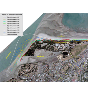 An aerial photo of Tahunanui Beach, showing erosion since 1948 (Nelson City Council)