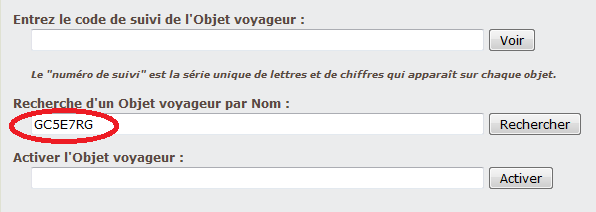 Pour trouver le TB, et donc la clé, vous devez faire une recherche par nom sur le site geocaching.com, comme ci dessous :