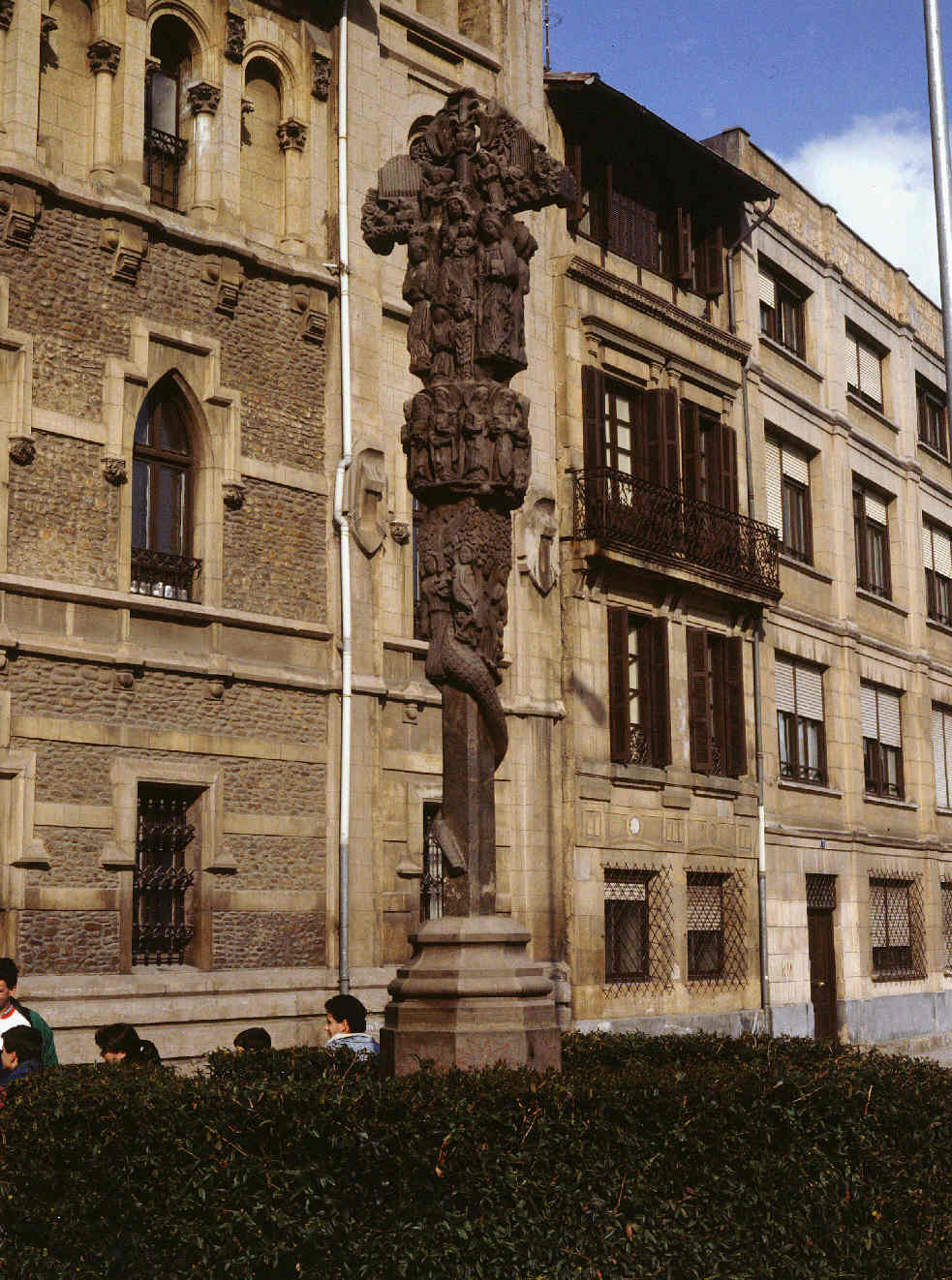 Delante de donde se ubicaba la cruz se encuentra la Iglesia de los Jesuitas. Destruido su interior en el bombardeo de 1937, fue reformado tras los daños sufridos durante la Guerra Civil. El diseño del edificio neomedieval, es un conjunto que engloba la iglesia, la residencia y la institución de enseñanza. Un espacio en el que la torre y aguja del templo ejercen como eje de una composición simétrica.