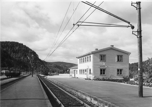 You will notice that Audnedal is situated in front of a very long tunnel, thus, large amounts of excavated stone had to be disposed of somewhere. In fact, the entire station area is elevated due to being erected on excavated stone.