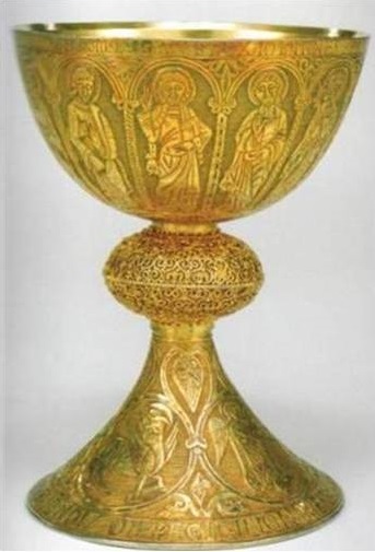 No seu conjunto, a iconografia do cálice de D. Gueda Mendes evoca um tema que também está presente em iluminuras de manuscritos medievais – a “Majestade Divina”: Cristo Rei na eterna glória (as arcadas representam simbolicamente o Paraíso), acolitado pelos apóstolos e pelos evangelistas (estes sob a forma dos “quatro viventes” que o Apocalipse refere).