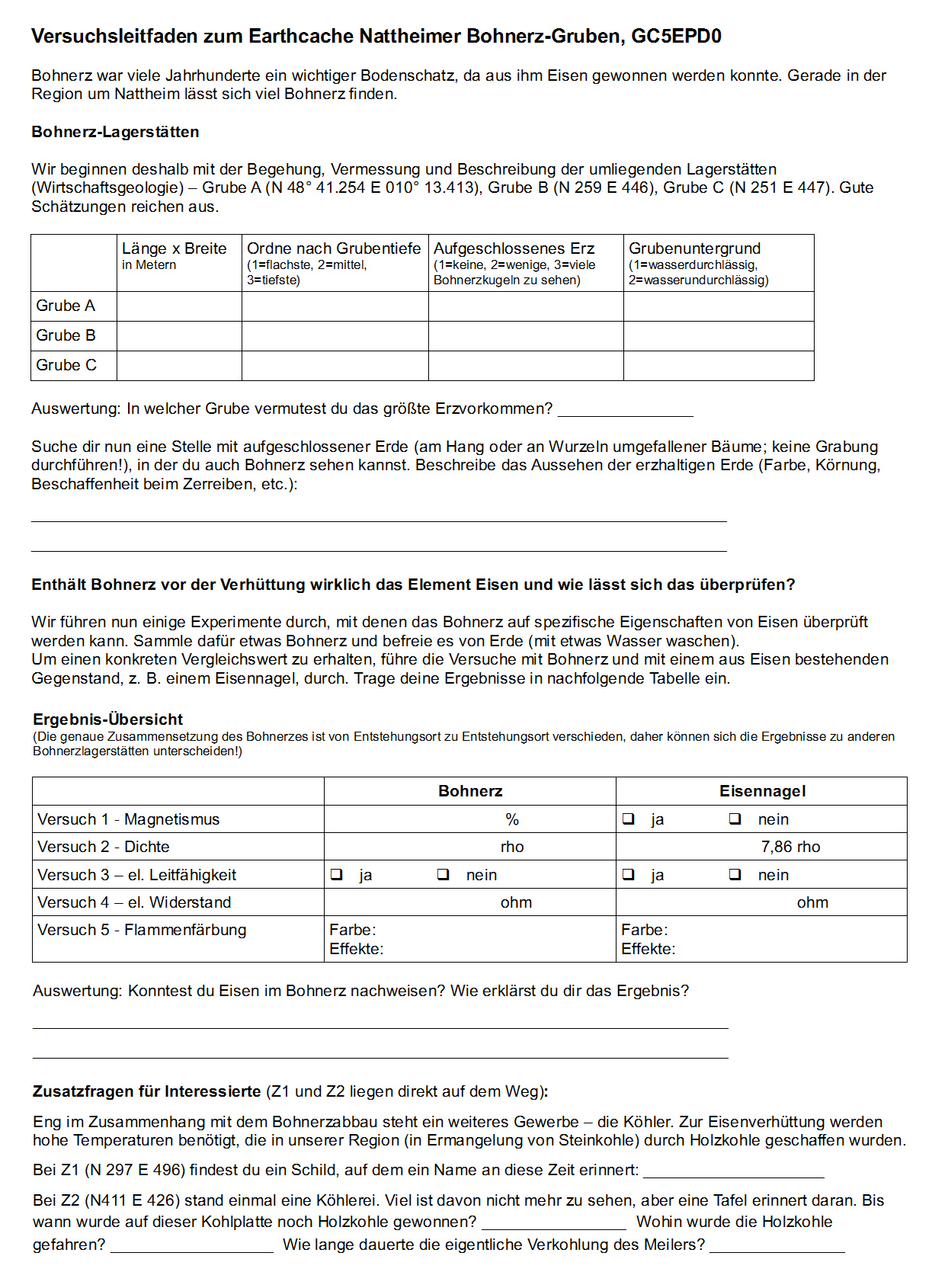 Du kannst den Versuchsleitfaden auch als PDF herunterladen. Als Cache-Besitzer versichere ich, dass diese Datei sicher ist. Sie wurde weder von Groundspeak noch von einem Reviewer auf schädlichen Inhalt überprüft. Du lädst diese Datei auf dein eigenes Risiko herunter.