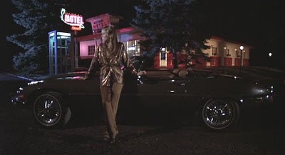 As the Blues Brothers are waiting for gas, the Chic Lady, played by Twiggy, pulls into Lloyd's. She wrongly thinks Elwood is a service attendant and asks him to fill her Jaguar's gas tank and check under the hood. Elwood chats her up and eventually suggests a rendevous at a motel up the interstate. In a brief shot later in the film, she is seen outside the motel waiting for Elwood to arrive. In reality, the motel is actually in West Chicago and is still operating.
