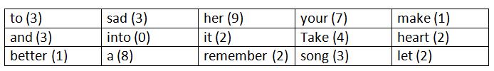 Instructions: Unscramble the words in the table below to form a song lyric. Once in the correct order, the coordinates will be apparent.