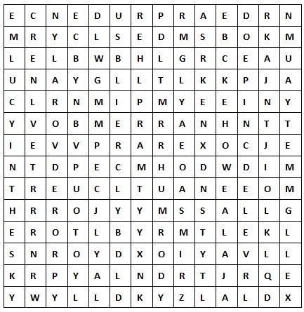 Instructions: Find all of the listed names that are referenced in Beatles songs. Once completed, locate the first 15 unused letters in the puzzle, keeping them in the order they occur, then use the Conversion Chart to convert the letters to coordinate digits.