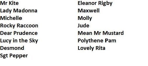 Beatles Word Search: Names in Beatles Songs